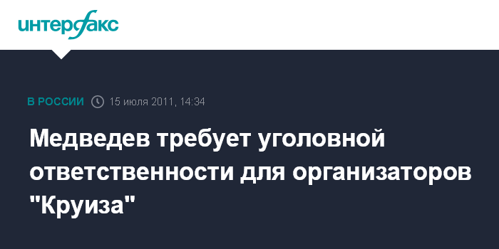 Медведев требует уголовной ответственности для организаторов "Круиза"