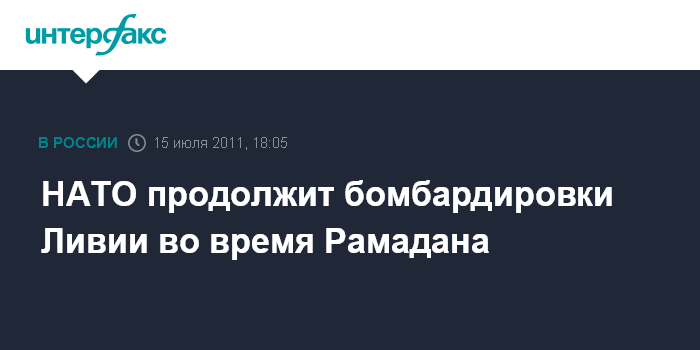 Стамбул. 15 июля. INTERFAX.RU - ВВС Североатлантического альянса продолжат военную операцию в Ливии в августе этого года во время священного мусульманского месяца Рамадан, заявил глава МИД Франции Ален Жюппе в ходе встречи "контактной группы" по Ливии в Стамбуле.