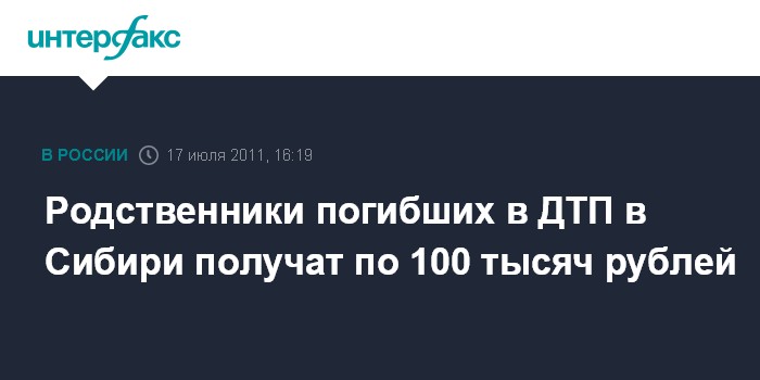 Родственники погибших в ДТП в Сибири получат по 100 тысяч рублей