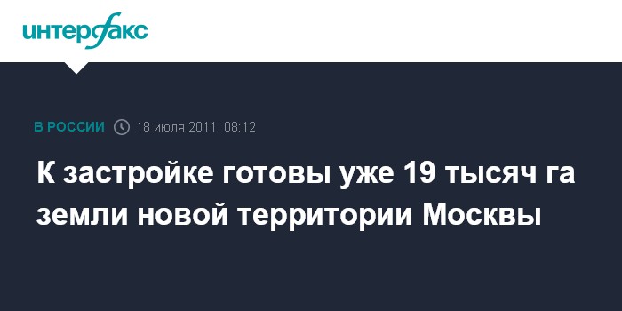 К застройке готовы уже 19 тысяч га земли новой территории Москвы