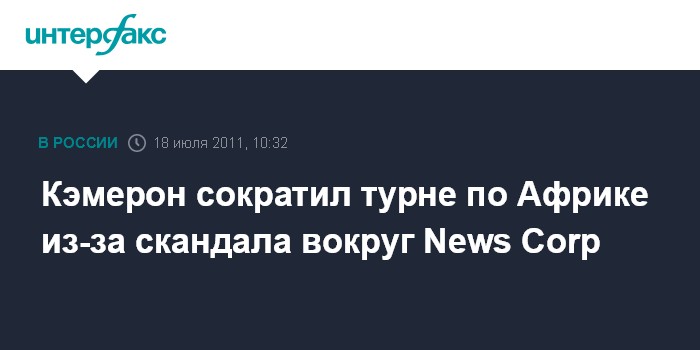 Лондон. 18 июля. INTERFAX.RU - Премьер-министр Великобритании Дэвид Кэмерон решил значительно сократить свое турне по Африке, чтобы уделить больше внимания скандалу, разгоревшемуся вокруг корпорации пишет в понедельник лондонская газета "Гардиан".
