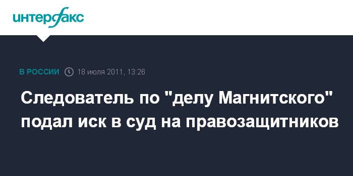 Следователь по "делу Магнитского" подал иск в суд на правозащитников