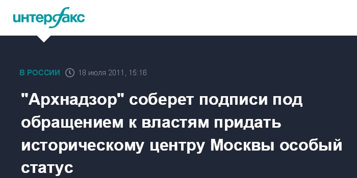 "Архнадзор" соберет подписи под обращением к властям придать историческому центру Москвы особый статус
