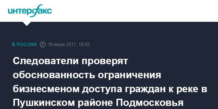 Он напомнил, что 18 июля на телеканале "Россия 1" вышел в эфир сюжет об ограничении доступа граждан к реке в Пушкинском районе Подмосковья.