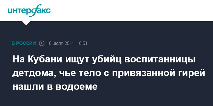 На Кубани ищут убийц воспитанницы детдома, чье тело с привязанной гирей нашли в водоеме