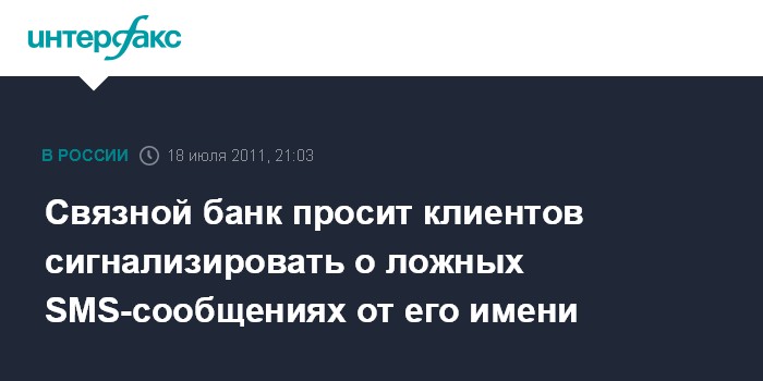 Москва. 18 июля. INTERFAX.RU - Связной банк просит внимательно относиться к SMS-сообщениям, распространенным от имени кредитной организации с интернет-сайтов мобильных операторов.