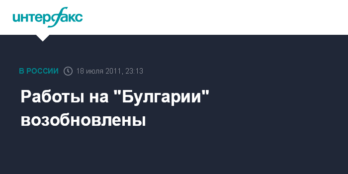 Куйбывшевский затон. 18 июля. ИНТЕРФАКС-ПОВОЛЖЬЕ - После небольшой остановки работы на затонувшем теплоходе "Булгария" возобновлены, сообщил агентству "Интерфакс" в понедельник официальный представитель по подъему судна Тимур Хикматов.