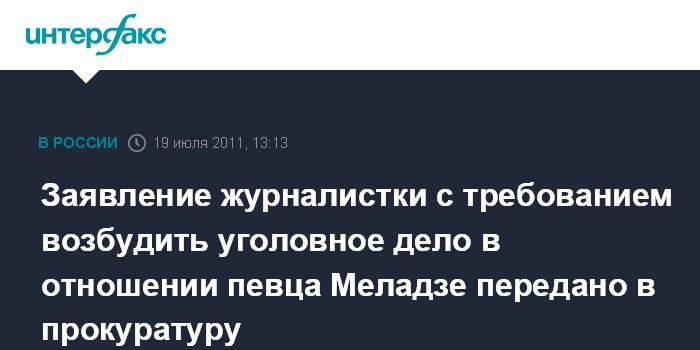 8 июля в ОВД по району "Арбат" поступило заявление от Е.Гусевой, где она требует возбудить уголовное дело по трем статьям в отношении В.Меладзе.