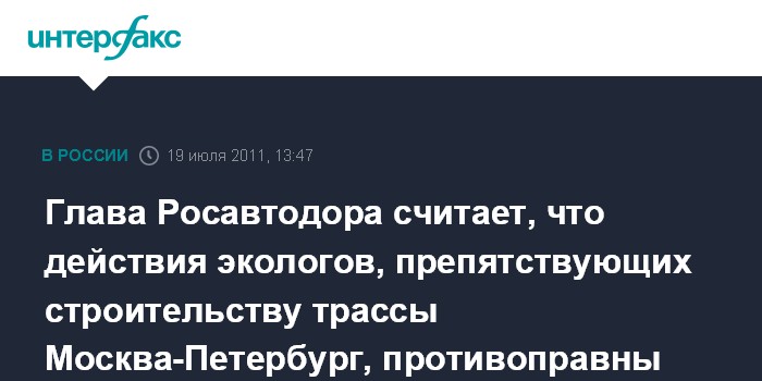 Глава Росавтодора считает, что действия экологов, препятствующих строительству трассы Москва-Петербург, противоправны