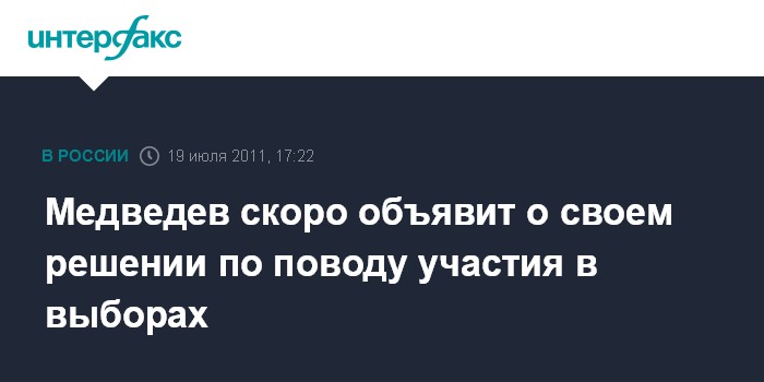 Медведев скоро объявит о своем решении по поводу участия в выборах