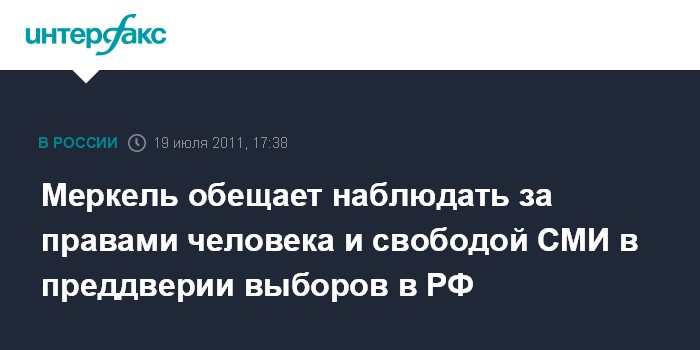 Ганновер. 19 июля. INTERFAX.RU - Федеральный канцлер Германии Ангела Меркель призвала Россию накануне выборов уделять особое внимание соблюдению прав человека и обеспечению свободы прессы. "Мы будем наблюдать за тем, как развивается ситуация с правами человека в России. Это было одной из тем форума "Петербургский диалог" - точно так же, как и тема свободы прессы. И сейчас перед лицом предстоящих выборов необходимо особое внимание уделять этому вопросу", - заявила Меркель во вторник в Ганновере на совместной с президентом РФ Дмитрием Медведевым пресс-конференции, состоявшейся после российско-германских консультаций.