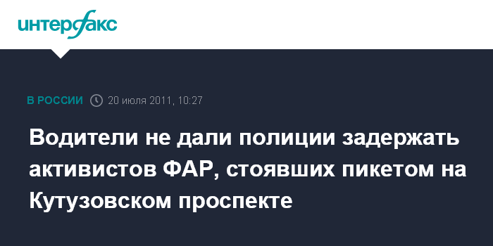 По его словам, двух представителей ФАР, участвующих в акции, полицейские пытались задержать за нарушение закона о пикетировании. Но проезжающие мимо водители начали сигналить и останавливать автомобили. "Я сказал, что здесь будет толпа народу, машины остановятся, если задержат. Нас не стали задерживать только по причине поддержки автомобилистов", - сказал Канаев.