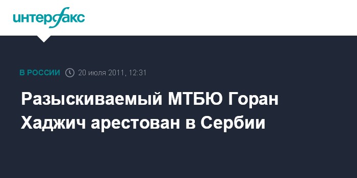 Москва. 20 июля. INTERFAX.RU – Властям Сербии удалось арестовать разыскиваемого Международным трибуналом по бывшей Югославии Горана Хаджича, сообщает в среду местная радиостанция Б-92.