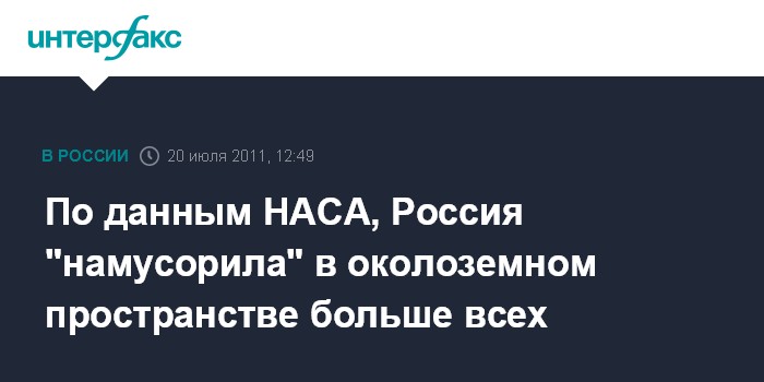 По данным НАСА, Россия "намусорила" в околоземном пространстве больше всех