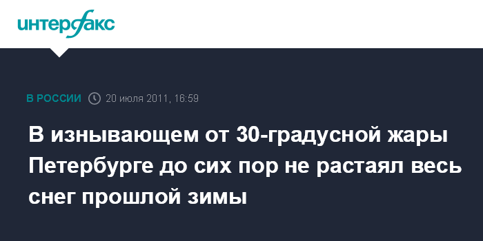 Санкт-Петербург. 20 июля. INTERFAX.RU - На снегоприемных пунктах Петербурга до сих пор не растаял весь снег, собранный в прошедшую зиму.
