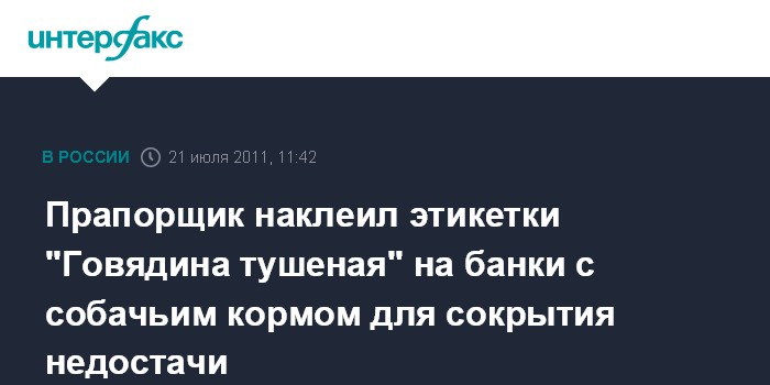 Прапорщик наклеил этикетки "Говядина тушеная" на банки с собачьим кормом для сокрытия недостачи