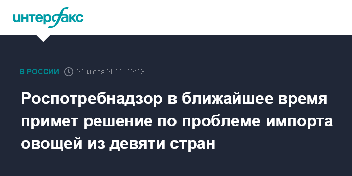 Роспотребнадзор в ближайшее время примет решение по проблеме импорта овощей из девяти стран