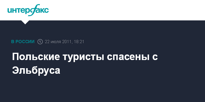 Пятигорск. 22 июля. INTERFAX.RU - Спасатели доставили в Пятигорск двух польских туристов, которые пропали накануне на Эльбрусе, сообщил агентству "Интерфакс-Юг" руководитель пресс-службы Северо-Кавказского регионального центра МЧС Кантемир Давыдов в пятницу.