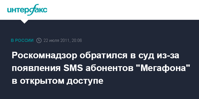 Как сообщил "Интерфаксу" представитель Роскомнадзора Михаил Воробьев, согласно протоколу "Мегафон" не обеспечил тайну связи, допустив распространение в Интернете SMS-сообщений абонентов.