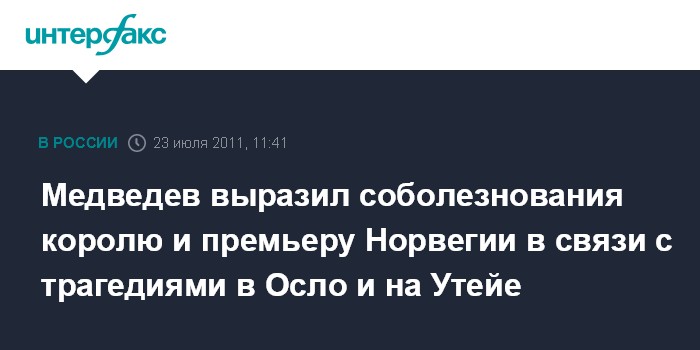 Медведев выразил соболезнования королю и премьеру Норвегии в связи с трагедиями в Осло и на Утейе