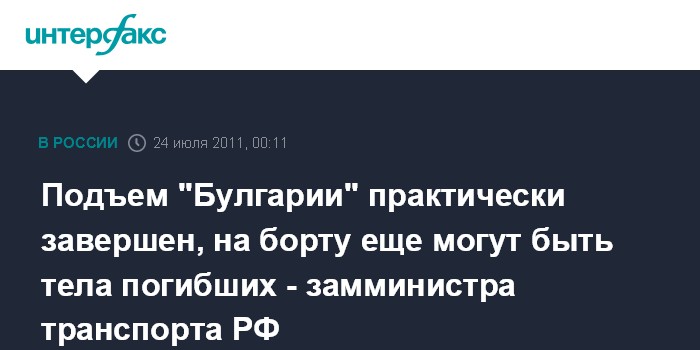 Подъем "Булгарии" практически завершен, на борту еще могут быть тела погибших - замминистра транспорта РФ