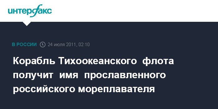 Корабль Тихоокеанского флота получит имя прославленного российского мореплавателя