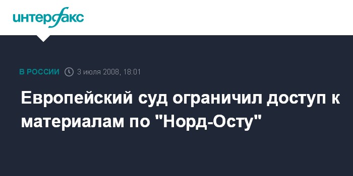 Москва. 3 июля. INTERFAX.RU - Европейский суд по правам человека принял решение об ограничении доступа к материалам по жалобе пострадавших в результате захвата заложников в "Норд-Осте".