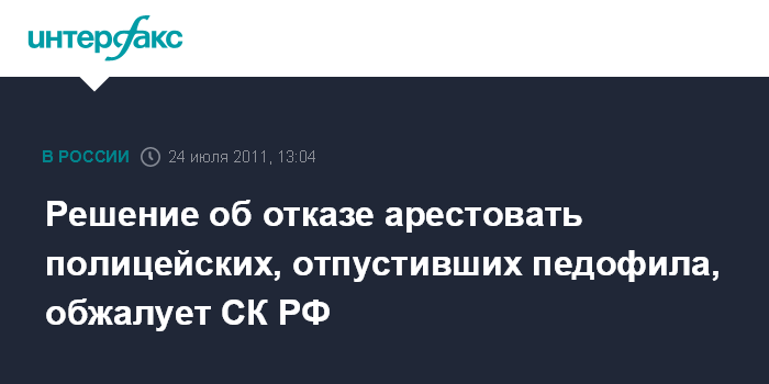 Решение об отказе арестовать полицейских, отпустивших педофила, обжалует СК РФ