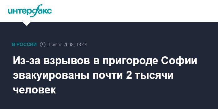 Из-за взрывов в пригороде Софии эвакуированы почти 2 тысячи человек
