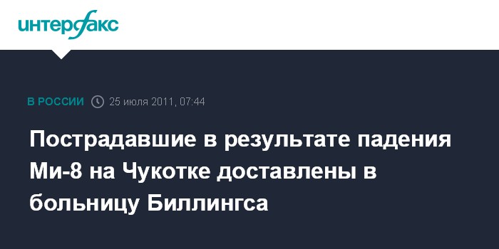 Пострадавшие в результате падения Ми-8 на Чукотке доставлены в больницу Биллингса