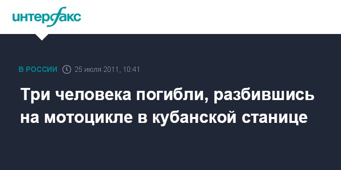 Краснодар. 25 июля. INTERFAX.RU - Мотоцикл врезался в кирпичную стену в Северском районе Кубани в понедельник, есть погибшие, сообщил агентству "Интерфакс-Юг" в отделе пропаганды УГИБДД ГУВД по Краснодарскому краю.