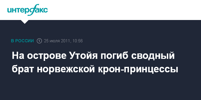 Осло. 25 июля. INTERFAX.RU - Одной из жертв бойни на норвежском острове Утойя стал сводный брат норвежской крон-принцессы Метте-Марит, сообщил в понедельник Королевский суд Норвегии.