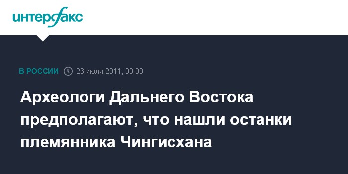 Археологи Дальнего Востока предполагают, что нашли останки племянника Чингисхана
