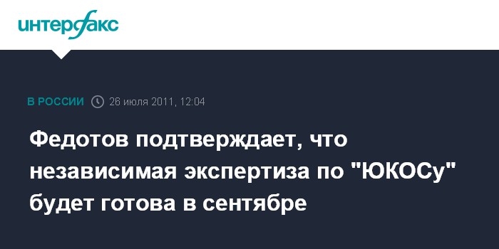 Федотов подтверждает, что независимая экспертиза по "ЮКОСу" будет готова в сентябре