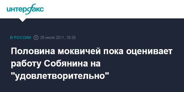 Половина моквичей пока оценивает работу Собянина на "удовлетворительно"