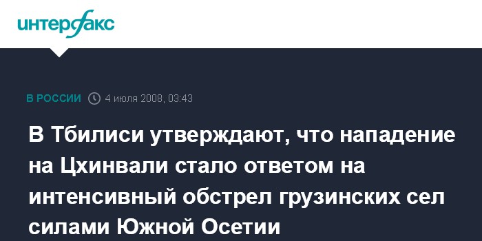 В Тбилиси утверждают, что нападение на Цхинвали стало ответом на интенсивный обстрел грузинских сел силами Южной Осетии