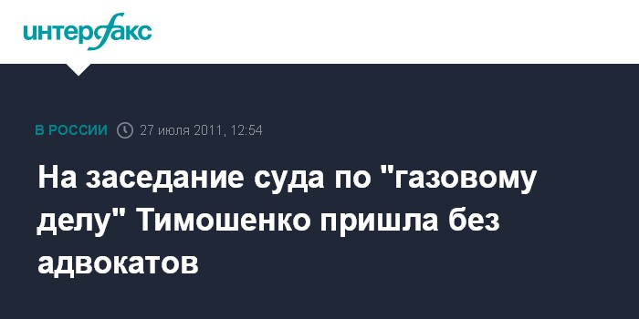 Киев. 27 июля. INTERFAX.RU - Началось заседание Печерского райсуда Киева по "газовому делу", возбужденному в отношении экс-премьераЮлии Тимошенко. Как передает корреспондент агентства "Интерфакс-Украина", в среду утром в зале суда присутствует Тимошенко без адвокатов. Кроме того, на процессе присутствуют представители Генеральной прокуратуры, а также представитель гражданского истца - компании НАК "Нафтогаз Украины".