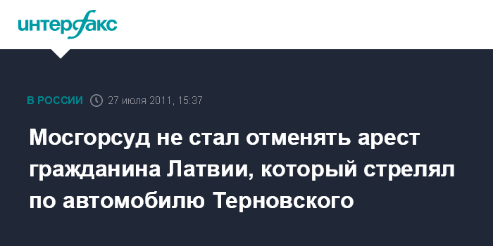 Москва. 27 июля. INTERFAX.RU - Мосгорсуд признал законным арест гражданина Латвии Григориса Чубревича, который, по версии следствия, обстрелял автомобиль блогера Дмитрия Терновского.