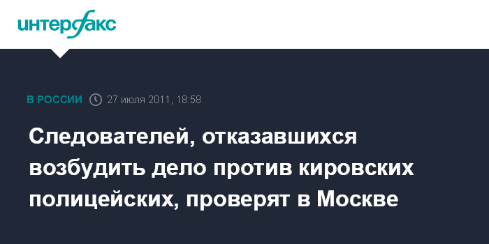 Следователей, отказавшихся возбудить дело против кировских полицейских, проверят в Москве