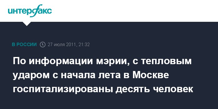 По информации мэрии, с тепловым ударом с начала лета в Москве госпитализированы десять человек