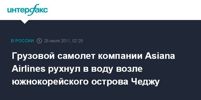 Грузовой самолет компании Asiana Airlines рухнул в воду возле южнокорейского острова Чеджу