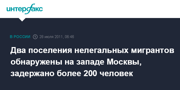 В среду в пресс-службе Главного управления МВД РФ по Москве "Интерфаксу" сообщили, что сотрудники столичной полиции обнаружили в лесополосе на западе Москвы лагерь нелегальных мигрантов, где были задержаны 72 человека.
