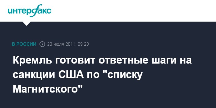 Кремль готовит ответные шаги на санкции США по "списку Магнитского"