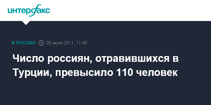 Москва. 28 июля. INTERFAX.RU - В Турции отравились 112 российских туристов, сообщает Ростуризм со ссылкой на последние данные генконсульства РФ в Анталье.