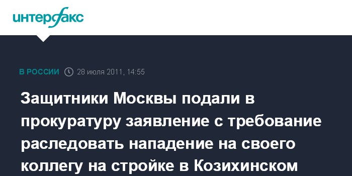 Защитники Москвы подали в прокуратуру заявление с требование раследовать нападение на своего коллегу на стройке в Козихинском