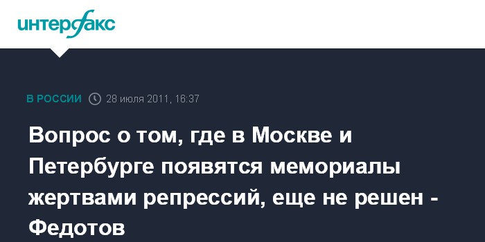 Вопрос о том, где в Москве и Петербурге появятся мемориалы жертвами репрессий, еще не решен - Федотов