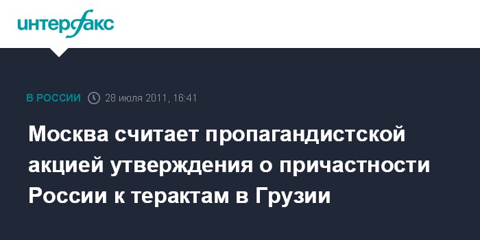 Москва. 28 июля. INTERFAX.RU - В Москве расценивают как пропагандистскую шумиху заявления американских СМИ о том, что ЦРУ якобы подтвердила причастность спецслужб России к терактам в Грузии.