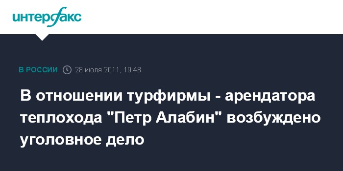 В отношении турфирмы - арендатора теплохода "Петр Алабин" возбуждено уголовное дело