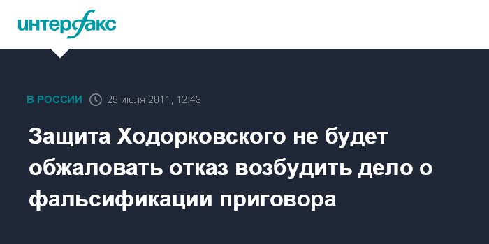 Защита Ходорковского не будет обжаловать отказ возбудить дело о фальсификации приговора