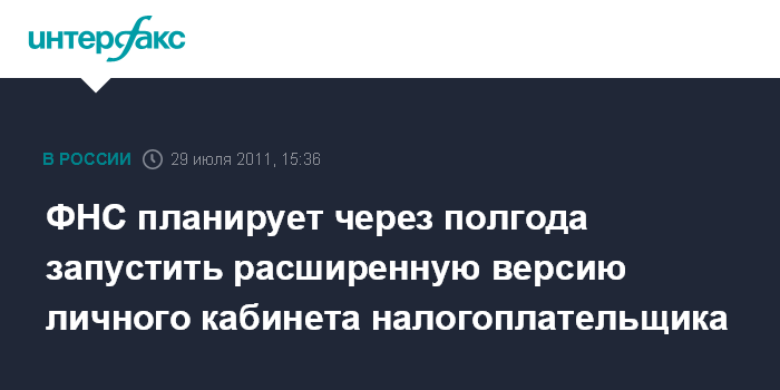 Москва. 29 июля. INTERFAX.RU - Федеральная налоговая служба (ФНС) РФ планирует через полгода запустить расширенную версию "личного кабинета" налогоплательщика, сообщил глава ведомства Михаил Мишустин на пресс-конференции в "Интерфаксе" в пятницу. "Если говорить о сроках, то мы готовы через полгода к его запуску", - сказал он.